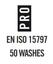 Quando uma peça de vestuário é marcada com EN ISO 15797 max 50x, isso significa que o tecido foi testado e aprovado em ambiente laboratorial após ter sido lavado 50 vezes de acordo com o método de lavagem industrial EN ISO 15797. O método de lavagem EN ISO 15797 é utilizado para avaliar têxteis/peças de vestuário que devem ser lavados industrialmente e consiste num processo de lavagem e secagem.